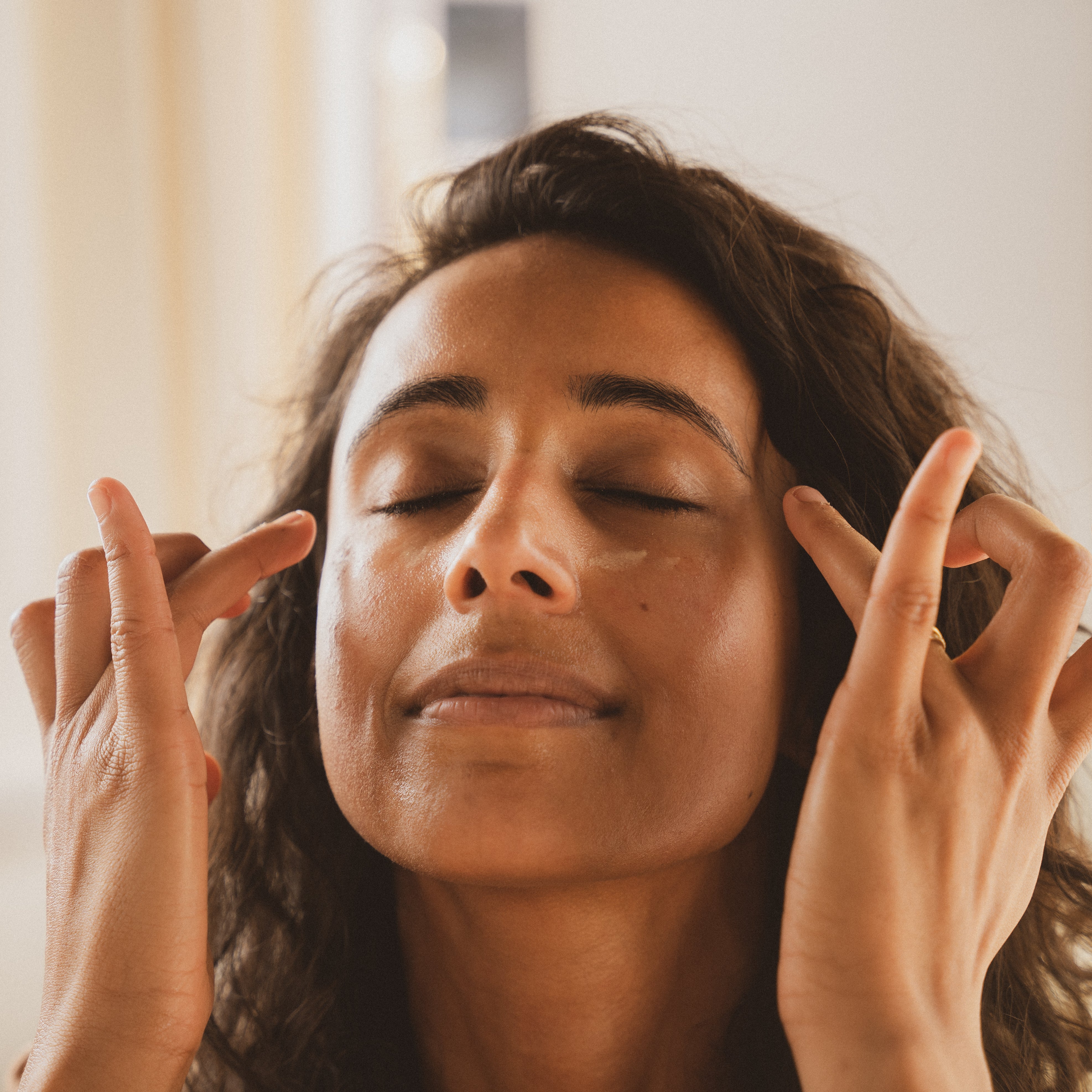 Start with a single drop on your ring finger and gently trace it around the orbital bone. Use light tapping motions to help the serum absorb, blending it along your cheekbones and brow for a natural highlight. For added relaxation, massage another drop into the third eye area to ease tension and soften concentration lines.